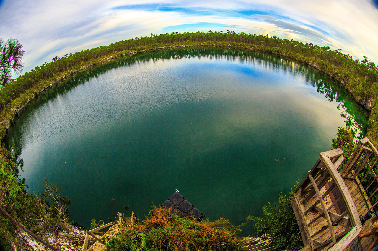 The islands of the Bahamas rest on a limestone substrate that is riddled with caverns and voids, much like a giant block of Swiss cheese, with some these water-filled chambers open to the surface. These pools are known as blue holes, and they can be found both on land and in surrounding waters. Some holes are the entrance to massive submerge cave systems which extend for miles underground and lure intrepid explorers. But divers don't have to venture into these dark realms to experience the magic of blue hole diving. The entrances and light-filled portion of these holes provide unique diving experiences that can be enjoyed by all.