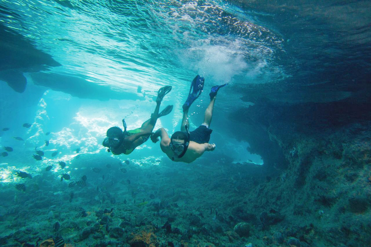 You don't need tanks to enjoy the underwater riches of the Bahamas. With just a mask, snorkel and fins, you can turn surface intervals into additional water time. All across the archipelago, reefs rise to within a few feet of the surface to create ideal conditions for snorkeling. Limestone ledges and grass beds add additional variety to the seascape, and many sites can be reached by a short swim from the beach. For something different, snorkelers can visit the famed Bimini Road, fin across the world's deepest blue hole or tour an underwater sculpture garden.