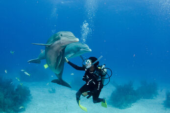 Swimming or diving with a pod of wild dolphins is a truly magical experience and a far cry from staged encounters at dolphin parks. In their natural environment, dolphins are curious, playful creatures that often initiate contact with humans. Divers may have chance encounters with free-swimming dolphins at sites across the Bahamas, but there are certain areas where visits with these gregarious cetaceans are almost guaranteed. These include the waters near Freeport on Grand Bahama Island, and sand flats near Bimini and on the Little Bahama Bank.