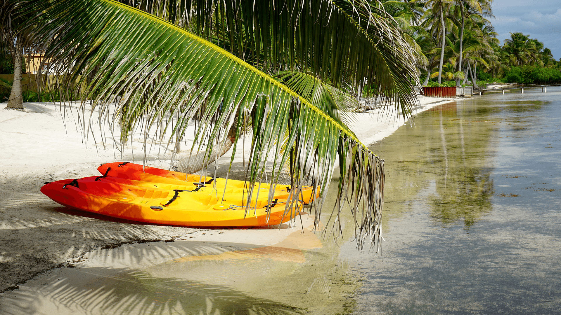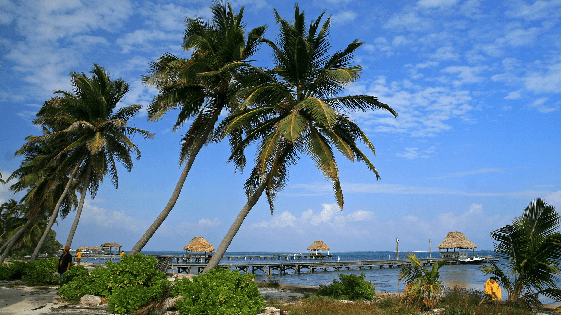 Belize's is flanked by the second longest barrier reef in the world. This massive coral wall runs the entire length of the country's Caribbean coastline. And just inside the reef line are a string of small islands known as cayes. The largest of these is Ambergris Caye, and it's also the pace where the corals come closest to the shore. You could call Ambergris a just-right island since it's large enough to have an airport, nice beach resorts, and some WiFi hotspots, but small enough to still have the feel of an off-grid, going-barefoot tropical village where golf carts and water taxis are the prime modes of transportation.