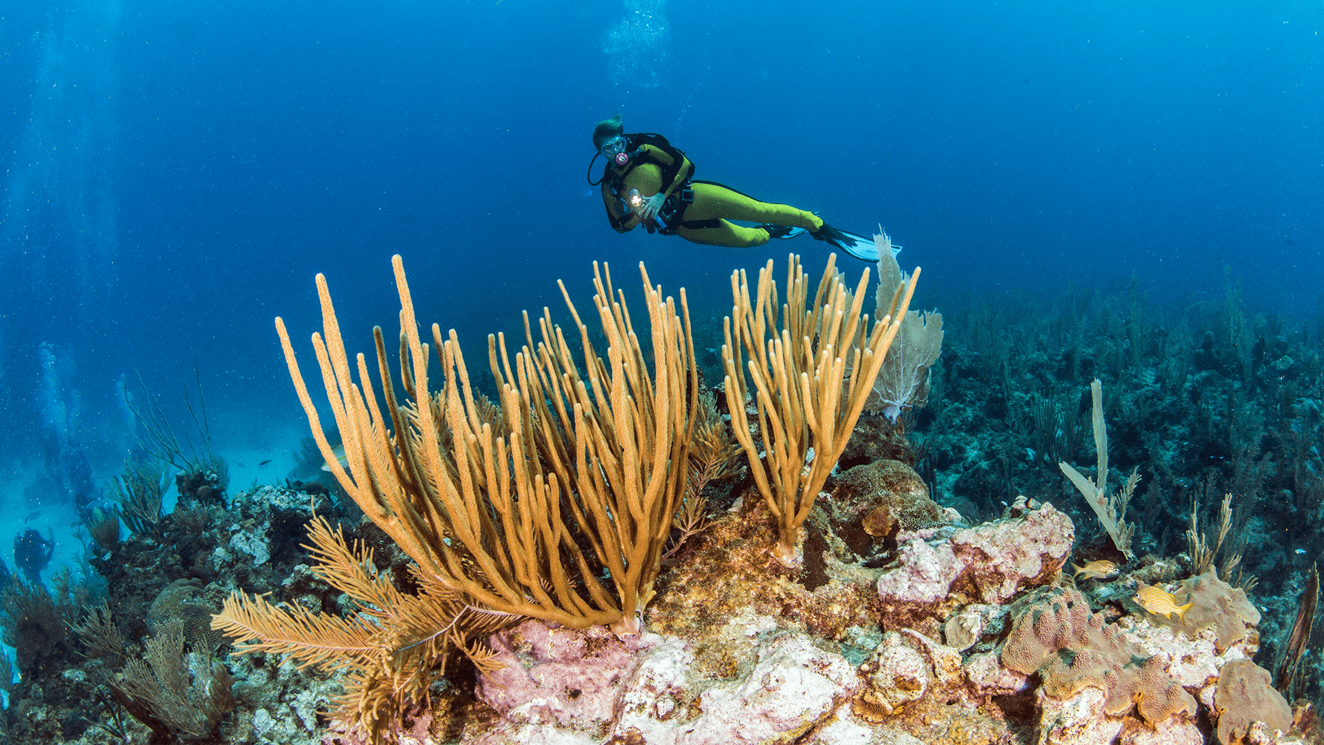 And the diving? Textbooks would describe the underwater landscape as “high relief spur and groove.” What that means is that the reefs stand tall above the sand, and are riddled with deep canyons, intricate swim-thoroughs and hidden grottoes. These hulking hard-coral castles are topped with staghorn, elkhorn and brain coral growth, and decorated in a colorful array of gorgonians and sponges. The full cast of Caribbean critters is in evidence, from tiny tropicals and invertebrates to turtles and reef sharks. Many of these sites are within a half mile of shore, and just a few minutes boat ride from resort docks.