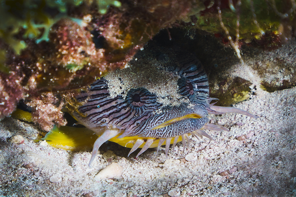 Park rules require all divers to leave the Sipadan Marine Preserve several hours before sunset. But that doesn't have to be the end of the diving day for guests staying at resorts on nearby islands. The shallow slopes surrounding Mabul Island offer exceptional macro diving opportunities, and it gets even better at night. Darkness brings out the cephalopods - blue-ringed, mimic, coconut, and wonderpus octopus - along with reef squids and flamboyant cuttlefish. Keen-eyed divers can hunt for cryptic frogfish and seek out diminutive finds such as ghost pipefish, hairy squat lobsters, mantis shrimp, and a gallery of colorful nudibranchs. All this and more can be seen with a shore dive on the house reef at Sipadan Water Village. Just offshore, the Seaventures Dive Rig adds another element to night dives, as guests can hunt for cryptic critters around the rig's pilings. Three miles to the east, the Sipadan Kapalai Dive Resort is built over the shallows of a mile-wide sandbar, providing exclusive access to an equally rewarding house reef that comes alive after dark.