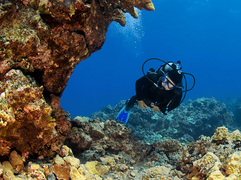 Hawaii is one of the quintessential paradise destinations for diving, whether you are young or old, accomplished or just starting out. With warm waters year-round, crystal clear views and protected areas, diving in Hawaii is an experience all in its own, only waiting for you to grasp it. One of the best areas in Hawaii to learn and dive would have to be Kona, Hawaii, which is one of the districts of the Big Island of Hawaii. This region of the islands is home to incredible underwater structures like lava tubes and domes, arches and caverns, plus reefs with colors so vivid they will brighten your day.