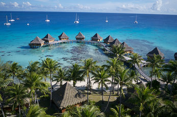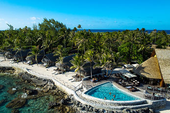 The Hotel Kia Ora Resort & Spa is Rangiroa's premier four-star property, with upscale beachfront and overwater bungalows and a range of amenities including a spa, fitness center, pool and wine cellar.