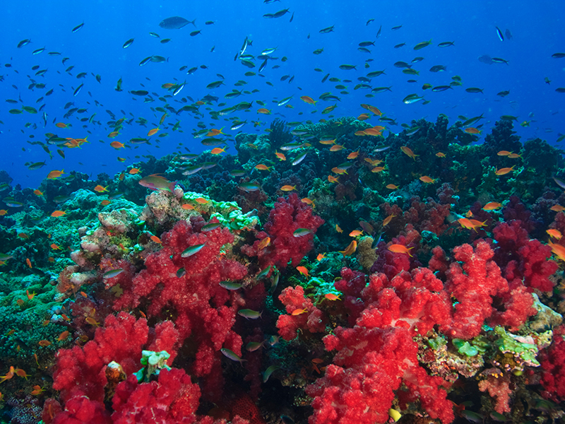 Of course, while there are several reasons to come to Taveuni Island that don't start with diving, it is one of the greatest draws of not only the island, but of Paradise Taveuni in particular as well. Sitting on the Somosomo Strait, the resort offers shore diving twenty-four hours a day, and has easy access to more than thirty different sites around the island. One of the most famous dive spots that Paradise Taveuni offers is the Rainbow Reef, a twenty-mile stretch of corals that displays such a wide variety of color to be akin to a rainbow. An environmental wonder of the world, what makes this reef more significant, more extraordinary than other reefs around the world? The mix of hard and soft corals attract different types of sea life, different types of fish that only add to the natural beauty of the island. And how can one mention the Rainbow Reef without speaking of its biggest draw, the Great White Wall, a 120-foot drop that is lined with some of the most beautiful soft corals that you will ever see.
