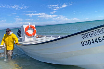 The pangas are chartered from local fishermen and depending on the size of the boat they can carry six to nine participants. All the pangas I rode were clean and well-kept; you could see that the local fishermen took care of their boats. It takes about 15 to 20 minutes to reach the part of the lagoon where the interactions happen, though it can be a bit shorter or longer depending on whether it's the earlier or later part of the season. All trips are regulated to a 90-minute maximum, with a mandatory break at a nearby beach before starting another 90-minute session.