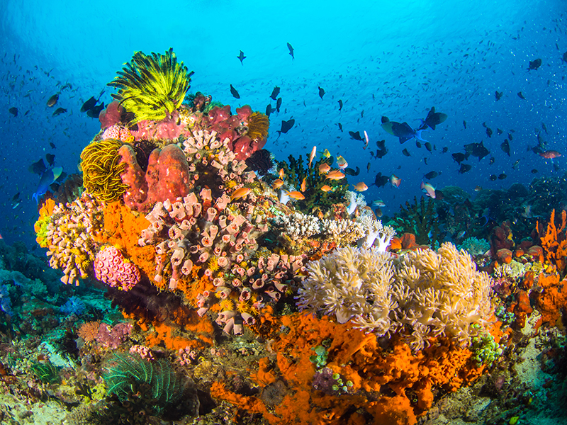 While many sites offer calm, sheltered conditions, divers can also visit current-washed points that hold massive schools of jacks and barracuda, or ride the currents along underwater ridge lines in the company of sea turtles and rays. Underwater topographies that allow for extended multi-level profiles combined with short boat rides to create opportunities for up to four dives a day, along with night dives. Anilao is not a destination known for an abundance of sharks, but black tip reef sharks may be found among the crevices and valleys of coral reefs, and gray reef sharks sometimes patrol deeper sections of slopes and walls. More common sightings in the big-fish category include grouper, bream and giant trevally.