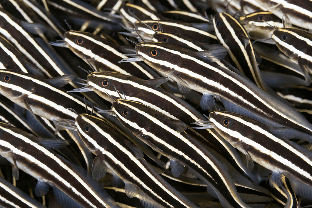 Shoaling behavior is the term used for a group of fish that “remain together for social reasons.” About a quarter of all fish shoal all their lives, and half will shoal up at one point or another. In general, fish will shoal with others of their own species, size and appearance. One of the primary benefits of this behavior is as a defense against predators. The safety in numbers strategy means more eyes looking out for predators. In addition, the group's seemingly random movements and structure may confuse a would-be predator, and decrease each individual member's chances of being singled out for the attack.