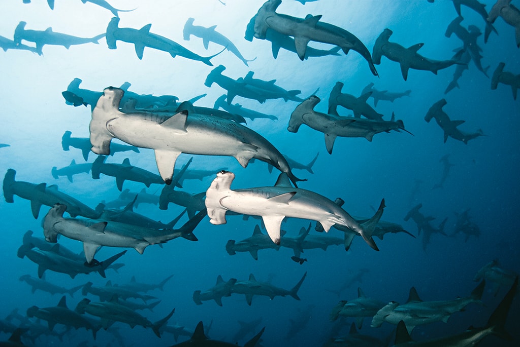 The Galapagos Islands are famous for unique and abundant marine life. But to get in on the best big animal action, you'll want to book a liveaboard that travels 100 miles northwest from the main island group to uninhabited Wolf and Darwin islands. These otherwise uninviting rock spires sit at the convergence of oceanic currents that nurture a rich underwater ecosystem and provide water temperatures a few degrees warmer than around the southern islands. And where there's food, the big fish gather.