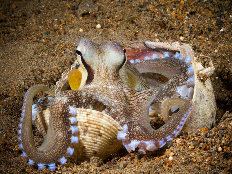 That’s not to say that you can only be awed by the sheer scope of size, color, shape, and vibrancy all have a place in the waters off this area of the Philippines, from the smallest species of shrimp and crustaceans, to the frilled appearances of scorpionfish, octopi, and other varieties of marine animals. Cuttlefish flash brilliant patterns of colors and blend in seamlessly into the backdrop, while you roll over fields of coral reefs watching the world float by. A complete view of what another world could be like. And after a relaxing day at one of the region's featured stays Aiyanar Beach and Dive Resort, you can sneak out after dark to experience one of the true pleasures of Anilao, night diving. If you thought the colors were electrifying and the undersea world was strange during the day, night under the waves in the region changes things completely, flipping the dial up to eleven.