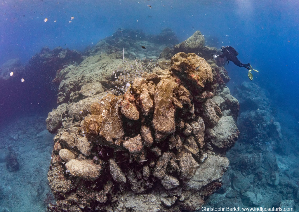 Which leads to the next question: are there more than whale sharks to lure divers to this mid-ocean outpost? The answer is yes. Saint Helena is the tip of a volcanic peak that rises more than two miles from the ocean floor, creating an oasis of life in the center of the Southern Atlantic. With temperate waters that can dip into the 60s in winter, it lies near the southern range of coral growth, so there are no pronounced reefs. There are, however, plenty of coral-encrusted ledges and boulders, with networks of caverns and outcroppings to shelter marine life. The underwater ecosystem thrives in the absence of fishing pressure. Divers will encounter a number of endemic local species, plus an expected cast of shallow-water dwellers such as eels, invertebrates and schooling fish. The proximity of blue water also guarantees a steady stream of passing pelagic such as jacks, rays, trevallies, tuna and wahoo. The surrounding waters have claimed their share of ships, and divers can explore a number of modern and historic wrecks.