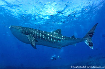 Bartlett has been involved in whale shark conservation for more than a decade. He has led trips to the Galapagos, the Maldives, and worked with Dr. Simon Pierce, who is regarded as the world's leading whale shark researcher. Bartlett's escorted excursions to Saint Helena originate in Johannesburg, South Africa, and include seven nights on Saint Helena with 10 dives over 5 days, plus 2 dedicated whale shark snorkeling trips. The Caradonna package also includes most meals, land tours and shared vehicle rental for touring the island. The dedicated whale shark snorkeling sessions follow island regulations which limit the number of people in the water, and prohibit deliberate SCUBA diving with the sharks. But this doesn't necessarily mean you won't see the whale sharks while on scuba, because regulations also don't require divers to break contact if the sharks appear and approach during the dive.