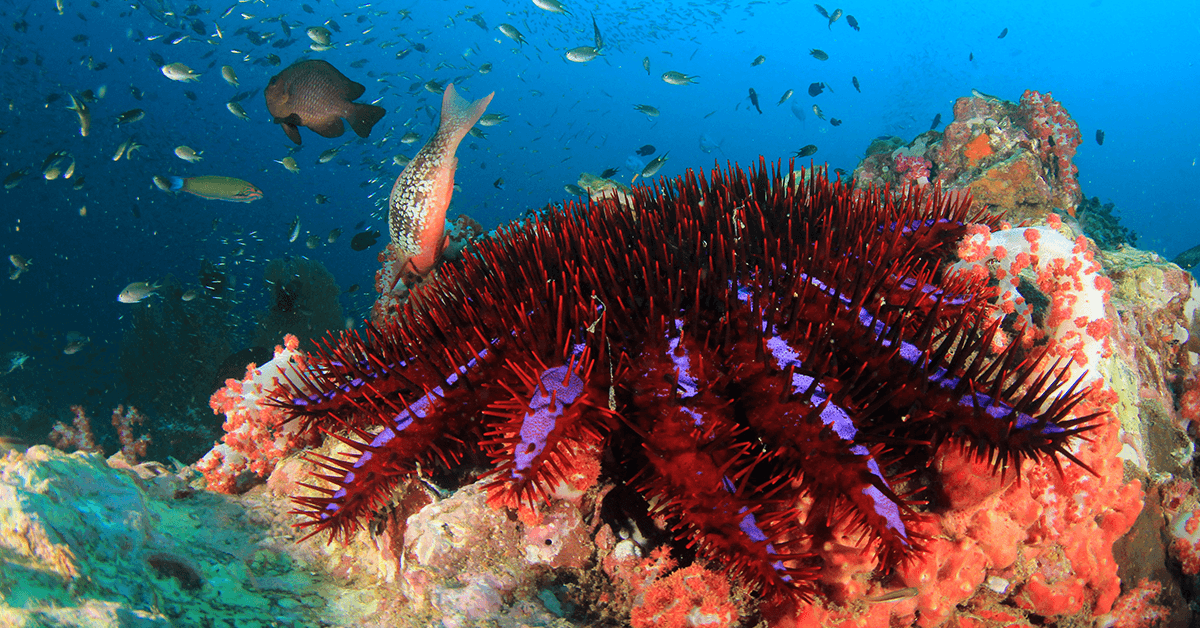 Outbreaks of Crown of Thorns Starfish (COTS) pose a significant threat to coral reefs in the Indo-pacific region. According to the Living Ocean Foundation, these starfish often exceed 1,000 animals per hectare and are capable of destroying an entire reef system in a matter of weeks.