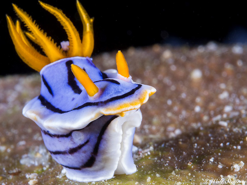 While many varieties of nudibranch are easy to spot, making a positive identification can be a bit tricky, as there may be considerable variation in both color and shape within a given species. It's quite easy to photograph these slow-moving slugs, but divers should resist the temptation to touch or reposition a nudibranch for the sake of an image.