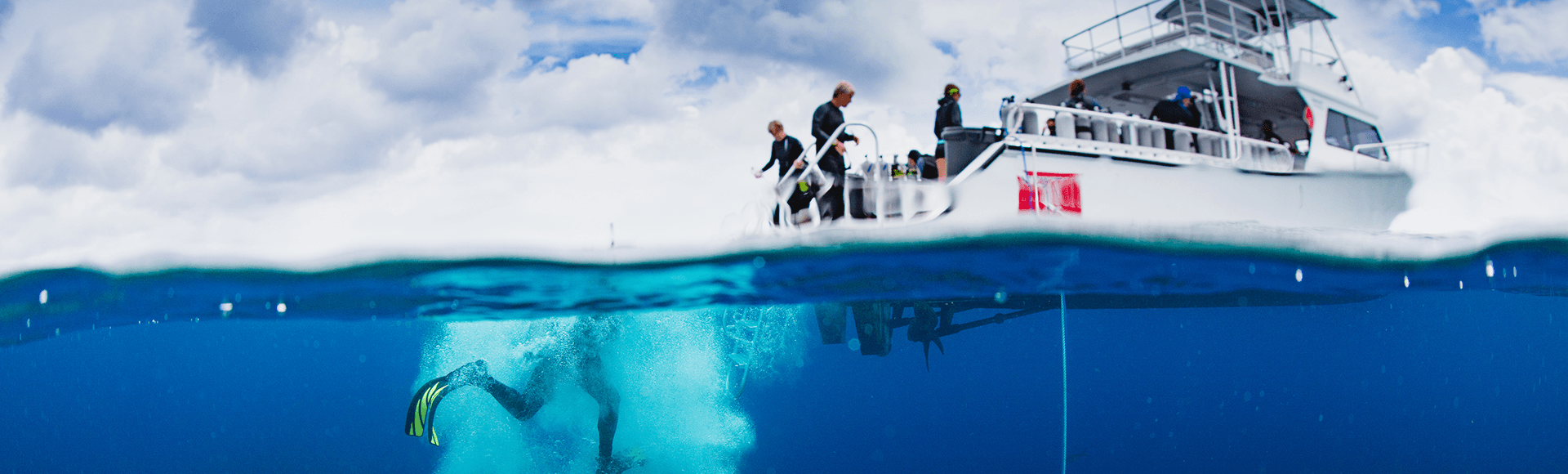 Scuba Diver entering the water from a Dive Boat in the Cayman Islands