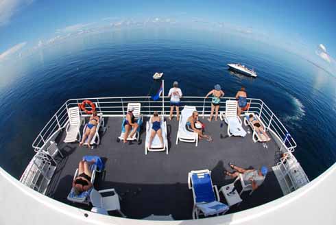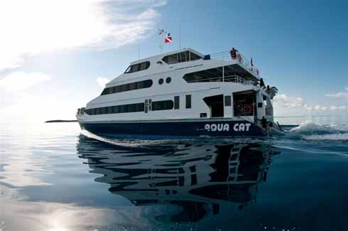 The Aqua Cat luxury liveaboard offers three levels of living space, private oversized cabins with ocean view windows (not dinky portholes) and full en suite amenities. The dive deck is over 900 square feet and there is ample room for everyone. A gourmet chef and professional crew of 10 will see to all your needs on board. Each Saturday, year-round, the Aqua Cat departs Nassau, bound for the remote islands of the Exumas, especially the Land and Sea Park, the most pristine area in all the Bahamas. No crowds, no set itineraries, just sit back, relax and choose from an incredible variety of activities including scuba diving, snorkeling, kayaking, stand-up paddle boarding, fishing, sunbathing, and island exploring. Each cruise offers a variety of dives, including shark dives, blue holes, swift drifts, walls, and reefs at all depths. You’ll log up to 26 unique and unforgettable dives during the week. Nitrox is also available. For those who wish to do more than blow bubbles, daily eco-adventures are also available. The SEA DOG, a 28’ jet boat, takes guests to deserted islands for hours of beach combing, relaxing, and hiking trails. Kayaks and SUPS are also available on board as well as snorkel boards. Also included are unique experiences indigenous to the Bahamas- meet the endangered iguanas of Allen’s Cay, swim with pigs at Major’s Cay, or watch the rare tropic seabirds nest at Camp Driftwood to name just a few of the activities you can enjoy making the Aqua Cat perfect for divers and non-divers alike.