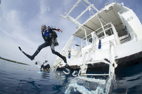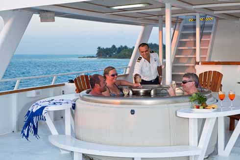The yacht has nine staterooms with individual air conditioning controls, ensuite facilities and TV/DVD combos. Chef-prepared meals, snacks, soft beverages, local beer and wine, and up to 27 dives are included in your charter package. After a full day of diving, including night dives, guests can relax in the upper deck hot tub.