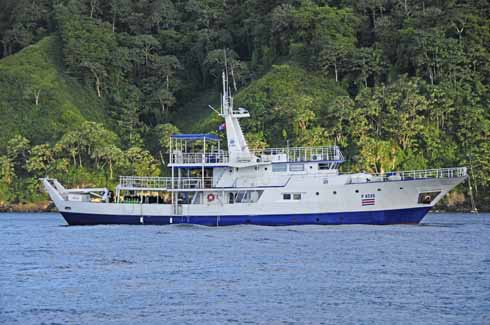 The Cocos Island Aggressor is a 110-foot liveaboard with 10 deluxe staterooms including one quad stateroom, comfortable lounge and dining salon, three sun decks (one covered with bar) and spacious dive deck.