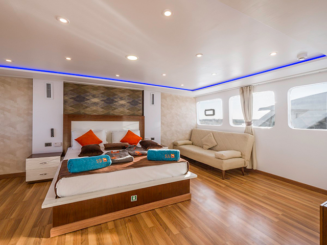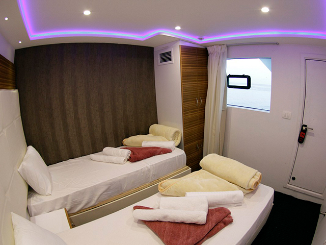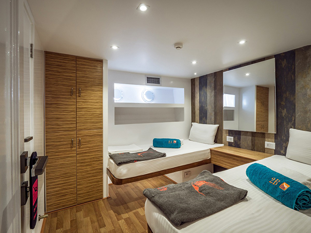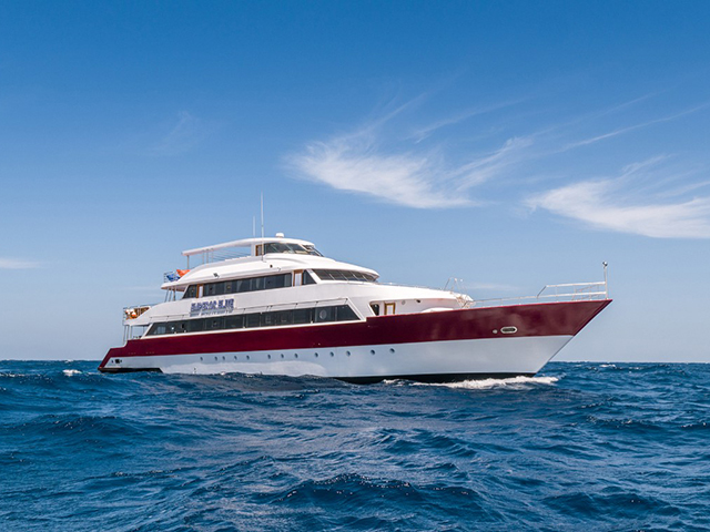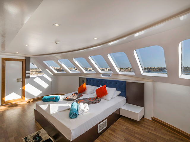 Custom-designed and built to a superior standard Emperor Elite is a 38 metre boat accommodating a maximum of 26 guests in 8 standard twin-berth cabins (lower deck), 3 premium twin cabins (choice of decks), a premium, upper deck Executive Suite, and - NEW for 2019 - a double Junior Suite (upper deck) with an amazing panoramic view of the Red Sea. All cabins are ensuite, boast independent air conditioning, three towels and a dive poncho per guest. She is a spacious boat with limited free WiFi (signal permitting), three sundecks, dive deck with platform, a stylish air-conditioned salon and air-conditioned dining room where great food and free red wine with dinner is served. She has all diving and safety equipment including two large RIBs with outboards, is also equipped with NITROX and can handle sidemount, rebreather & tech diving on request.