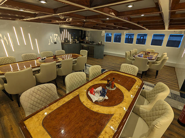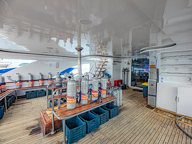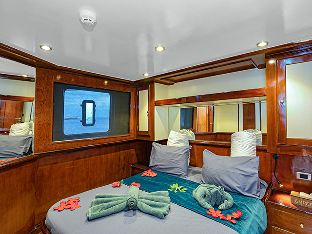 Emperor Superior (37 Meters long) superb year-round diving in the Egyptian Red Sea. 13 cabins comfortably accommodating 26 divers. All cabins have a private ensuite bathroom, individually controlled AC, storage space, and two towels per guest. Spacious air-conditioned salon with entertainment system, and dining room with freshly prepared cuisine served throughout the day. There’s also an al-fresco lounge at the front of the main deck, perfect for dolphin spotting, or enjoying a drink with fellow divers at the end of the day. Two sundecks with loungers mean ample space for all guests to relax in between dives. Itineraries aboard the Emperor Superior liveaboard are week-long, many of which offer more than 21 dives per trip, ensuring divers get the most of their Red Sea dive safari. With camera set up stations, charging areas, and dedicated rinse tanks, she is a photographer's dream. The dive deck has individual gear storage and ample space for all divers to get ready in comfort, and two dive tenders to make getting to and from the dive sites hassle-free.