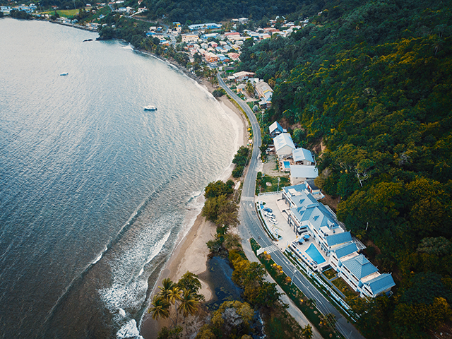 Escape to Manta Lodge & Dive Centre in Speyside, Tobago, a tropical haven offering luxury and adventure. Immerse in comfort and adventure at our seaside haven, perfecting your stay with a bespoke diving experience. This 20-room hotel features elegantly appointed rooms with private balconies and stunning views of the Caribbean Sea. Experience an underwater odyssey with their onsite professional dive center - from the safe, supervised pool to exploring the ocean’s depths. Coral Cove Restaurant and Bar is their invitation to indulge in a distinct culinary experience. Freshly prepared dishes celebrate the local flavours of the Caribbean island, while bringing an international flair to the dining experience.