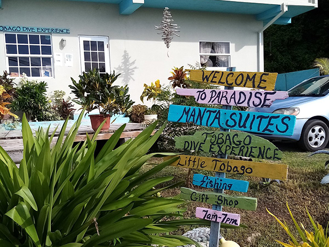 Manta Suites at Tobago Dive Experience is a small boutique property built especially with divers in mind. Offering 3 two bedroom/one bath apartments, 2 one bedroom/one bath apartments and a 2 bedroom/two full bath luxury apartment along with one hotel room style accommodation. All of the apartments have a full kitchen and ocean views. The rooms all offer flexible bedding options perfect for groups or families. Free WiFi throughout the property and air conditioned rooms make it a great place to unwind after diving. Tobago Dive Experience is located on property and offers something for everyone. Full training from beginner to Dive Master are offered year round. The specially designed swimming pool is great for training and relaxing.