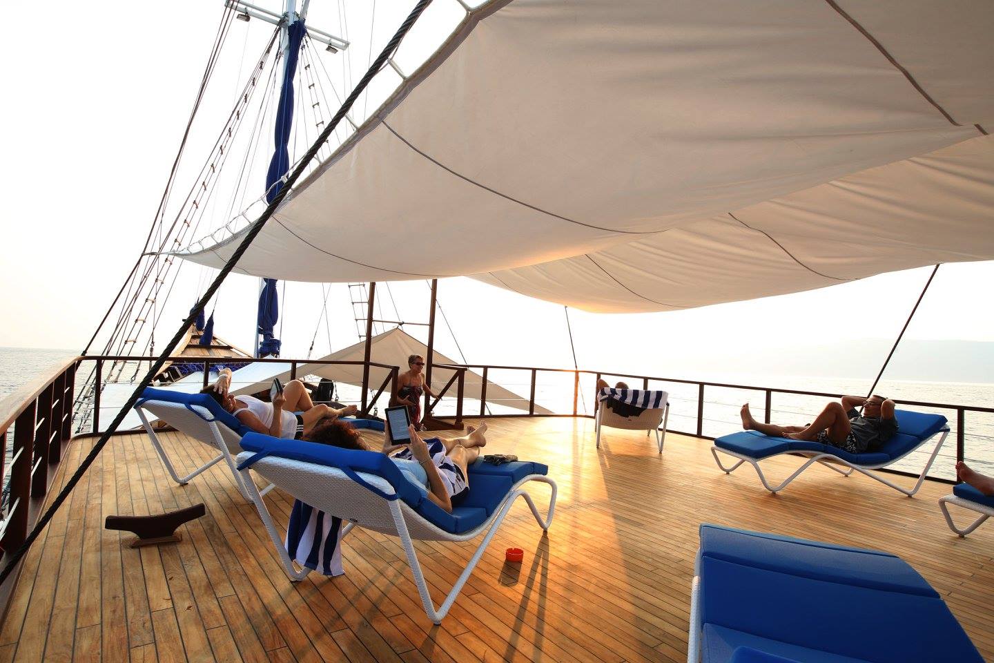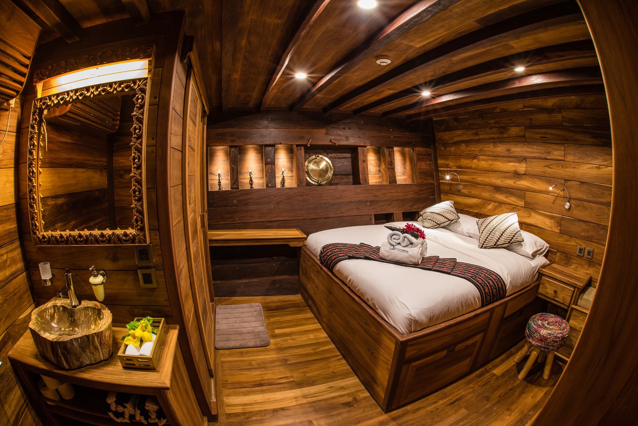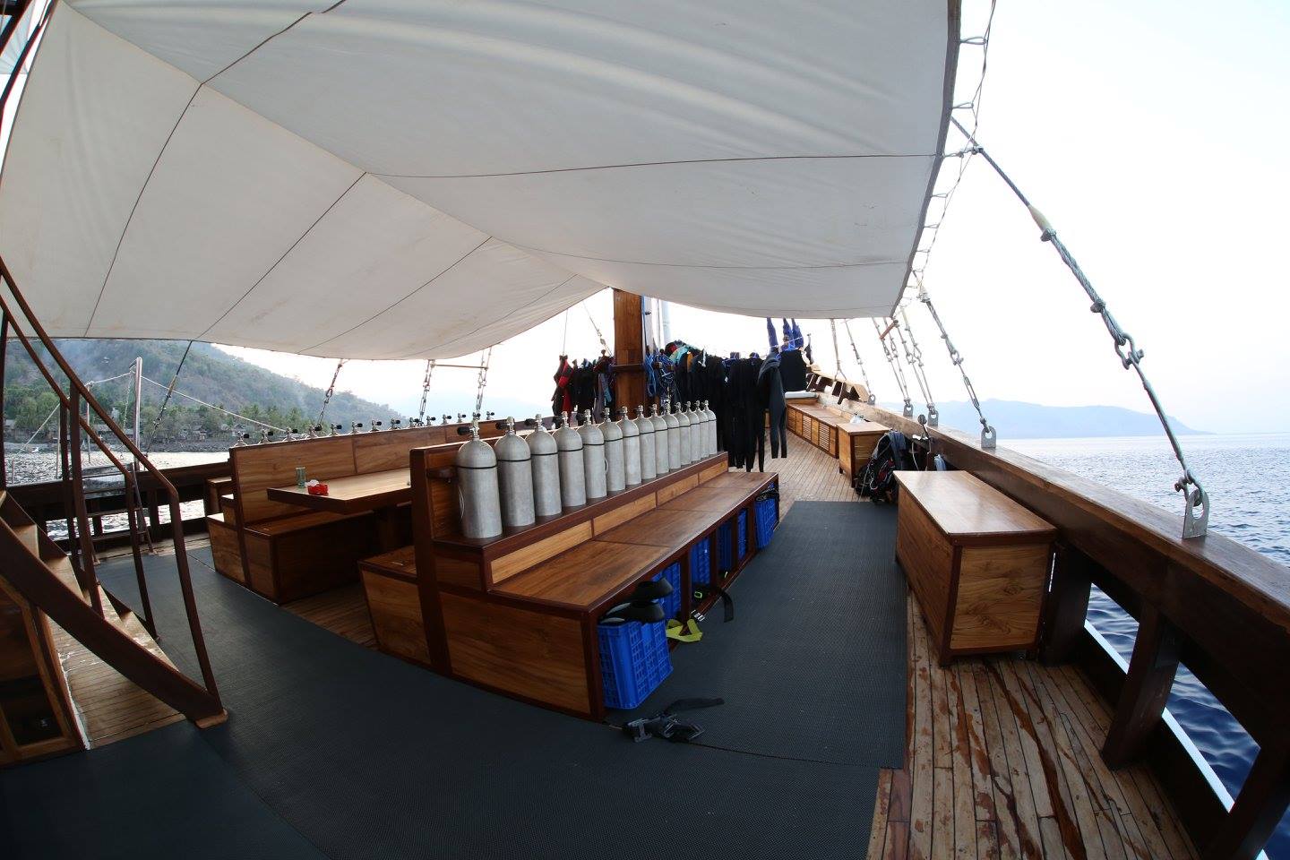 his brand new Liveboard is fitted with all the features of a modern diving boat, as its powerful marine engine that can reach 10 knot cruise speed, making sure a swift travel. During the design process the focus was put on details. Functionality was paired with aesthetics and quality materials. The layout of the ship was built around the needs of the guests. Comfort and service are of highest priority on board. The atmosphere is relaxed and cozy. Social and yet private.