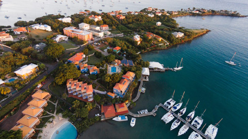 True Blue Bay is a small family-owned and operated hotel located on the south coast of Grenada. True Blue delivers a Caribbean-chic ambiance with a colorful and relaxed tropical atmosphere. Accommodation choices including large rooms with sitting areas, suites with kitchenettes, and villas with open living areas and vaulted ceilings. All accommodations offer air conditioning, flat-screen televisions and private porches or balconies. The lushly-landscape property includes two pools, a spa, yoga studio, fitness center, gift shop and conference room. The on-site dive center operated by Aquanauts Grenada provides daily boat diving services to a variety of wrecks and reefs. There are two restaurants on-site, with waterfront dining at the Dodgy Dock. The resort offers a range of land activities and water sports, is close to Grand Anse Beach, and within walking distance of a variety of local restaurants and shops.